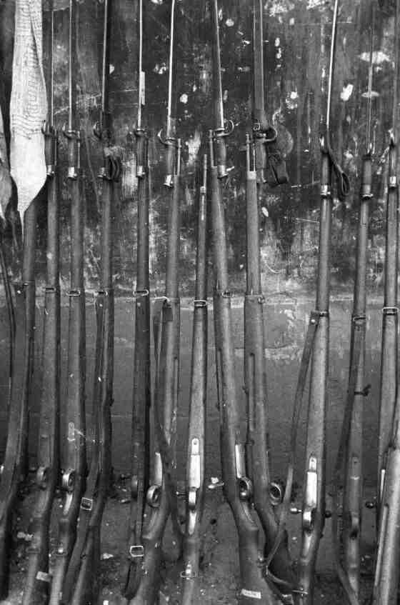 上图_ 中国军队缴获的日本38 式步枪(左)、92 式重机枪、zb26轻机枪和 大正十一式轻机枪