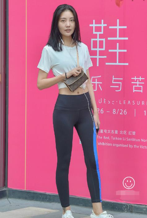 美女穿休闲背心配紧身裤,皮肤白嫩透亮很是吸睛
