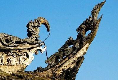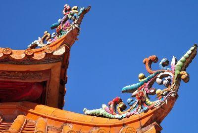 飞檐设计构图巧妙,造型优美的屋顶给人们以赏心悦目的艺术享受。飞翘的屋檐上往往雕刻避邪祈福灵兽,似麒麟,像飞鹤,有人喜欢灵兽,有人喜欢祥云,或是一条活蹦乱跳的鲤鱼,代表着临水而居的亲水文化
