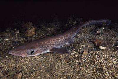 在讨论该问题之前,我们先来看看正常的黑嘴猫鲨是长什么样的。如下图所示,黑嘴猫鲨的身体比较修长,头部没有普通鲨鱼那样突出。因为它的脸从正面看像猫脸,而且嘴巴有一圈黑色的花纹,因此被称为“黑嘴猫鲨”。正常情况下,黑嘴猫鲨的体表颜色是灰褐色,伴有一些不规则的斑纹,但渔民发现的黑嘴猫鲨尸体却是淡黄色的,让人想知道什么原因导致了它变成这副模样。