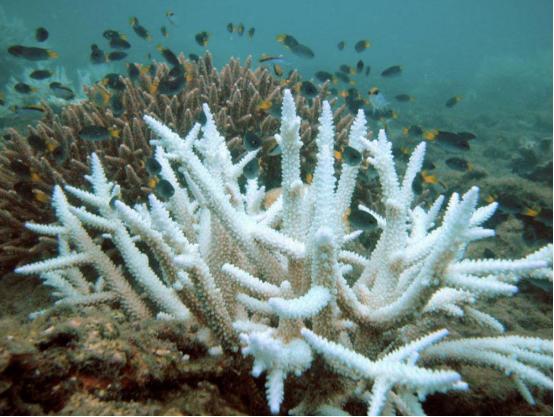 失去了赖以生存的共生海藻,越来越多珊瑚暴露出了原始的颜色,并且在长期失去营养供应的情况下走向死亡。有数据调查显示,从1998年开始,气候变暖已经导致全球大约16%的珊瑚发生白化现象,许多原本丰富多彩的珊瑚丛如今已经变成了白茫茫的一片。珊瑚白化不仅仅导致珊瑚的大量死亡,以珊瑚丛为核心的生态系统也会崩溃,导致大量生物死亡。