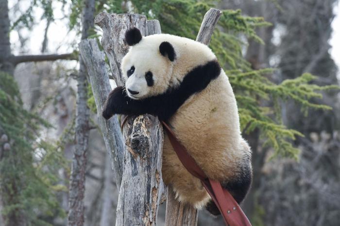 3月7日,大熊猫友友在西班牙马德里动物园内玩耍。新华社发(古斯塔沃·巴连特摄)