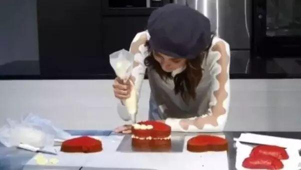 这边陈凯琳情人节亲自为郑嘉颖炮制心形蛋糕