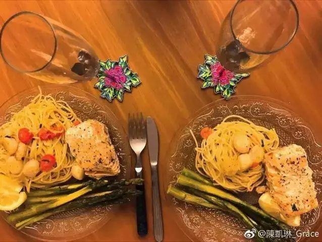 然后第二年郑嘉颖生日,陈凯琳又准点发文祝贺,并且亲自煮爱心晚餐庆祝男友生日