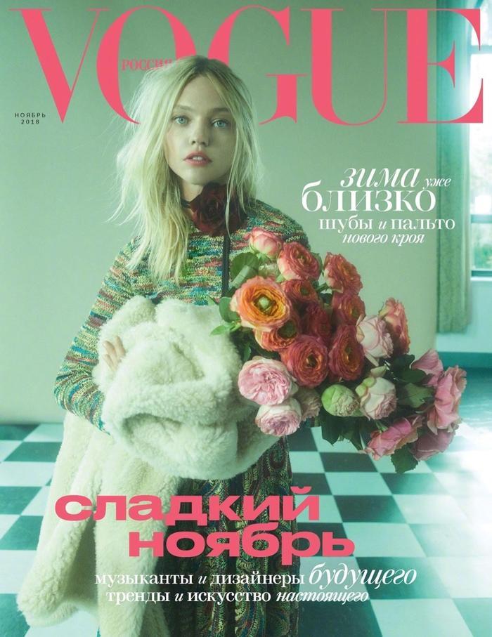俄罗斯超模萨沙·彼伏波洛娃Sasha Pivovarova 身穿 Dior 连衣裙登上《Vogue》俄罗斯版2018年十一月号封面,摄影师 Emma Summerton掌镜拍摄,内页大片中身穿Calvin Klein,Dolce&Gabbana和Valentino等品牌秋季服饰出镜。