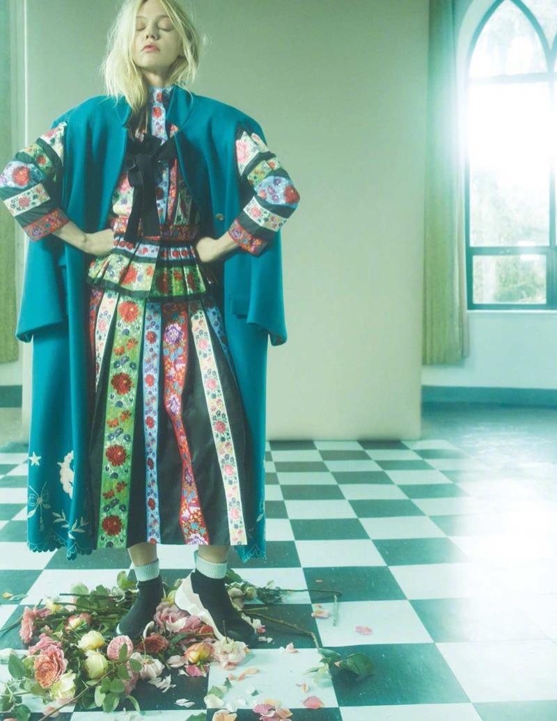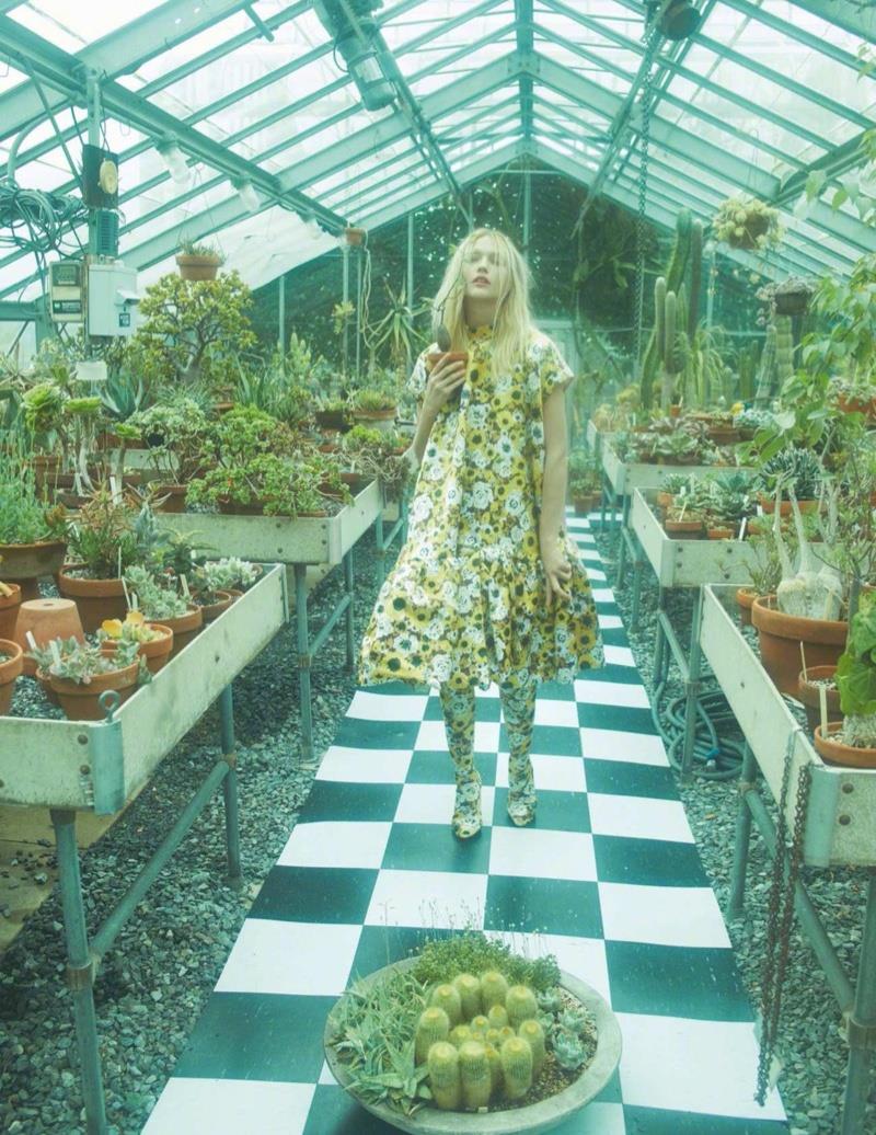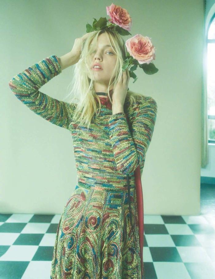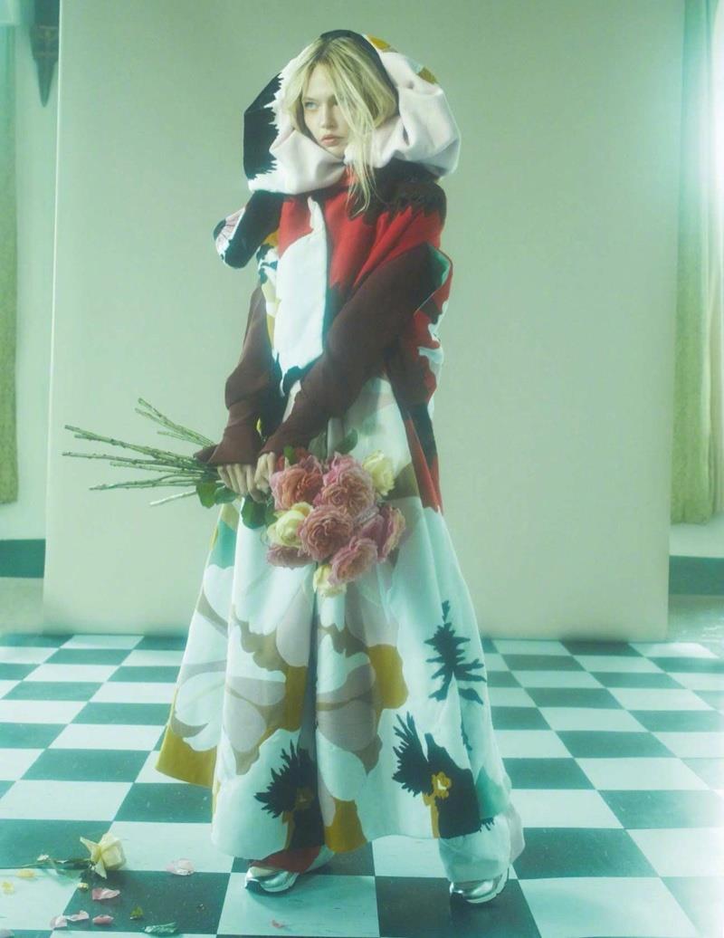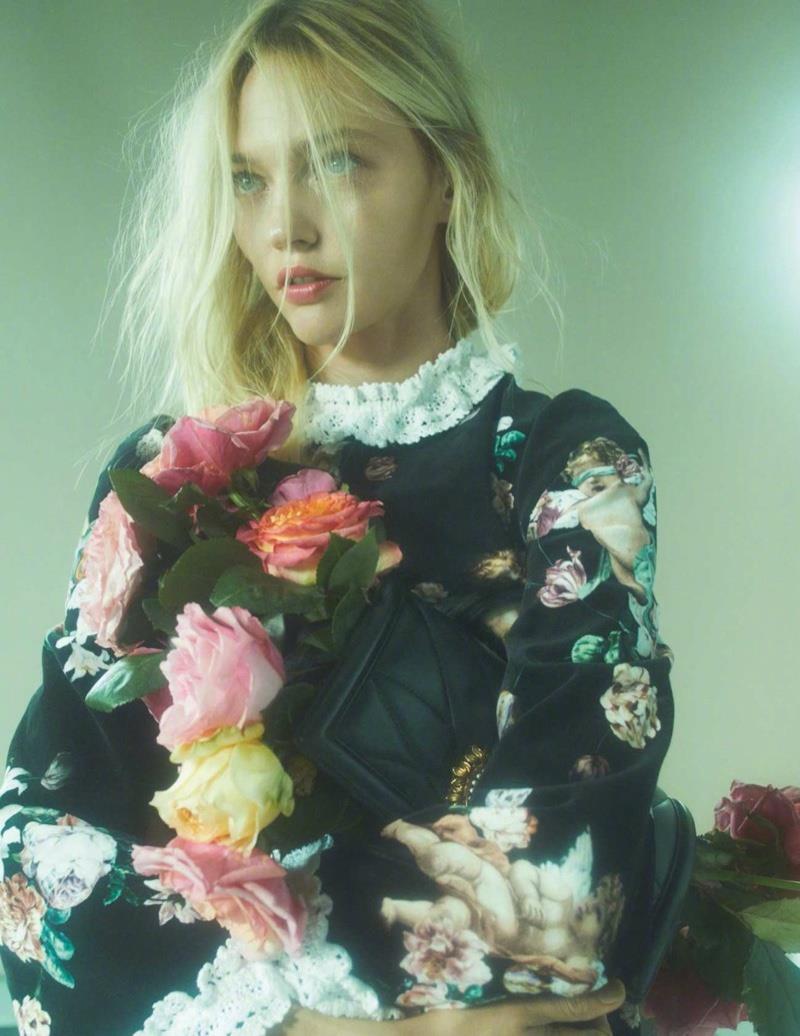 俄罗斯超模萨沙·彼伏波洛娃Sasha Pivovarova 身穿 Dior 连衣裙登上《