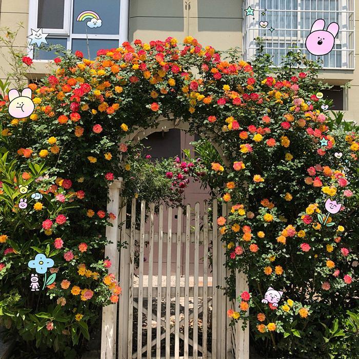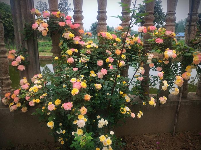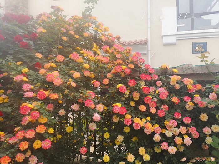 花期断的藤本月季,也是流行不起来的,大半年“装树”偶尔开花的,当然做不了花墙。藤彩虹就是那种很勤开花的品种,经常看李子柒视频的朋友稍微留意下,无论什么季节,该品种出现的适合,都是花开满树的。只要养护得当,条件适宜,藤彩虹四季都能开花,当然,春秋两季最盛、最美,夏花比较难看,冬花比较少,难以开成群。