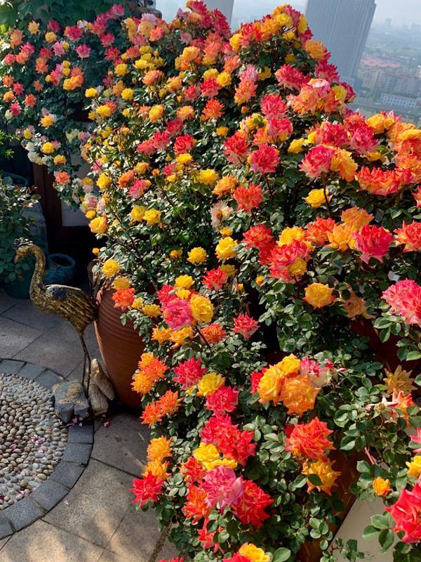 藤彩虹虽然是大型藤本,但也可以当灌木养,盆栽也可以,当然是花盆越大越好,土壤要腐殖质丰富、排水、透气的为佳,要放在太阳光照充足的地方,阳台、露台都可以,平时要多晒太阳,干透浇水,薄肥勤施,也是比较好管理的藤本月季。
