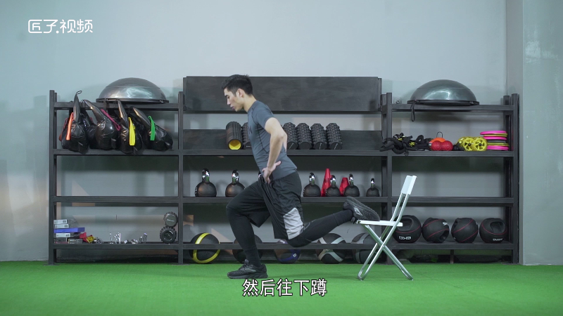背对凳子,把脚尖搭上去,腹部收紧,然后往下蹲。