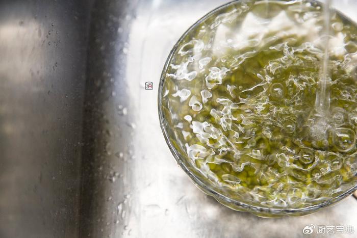 轻轻地用清水洗净绿豆,享受洗涤的过程。