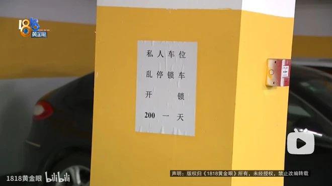 除了 " 堵 " 车外,有车主还会先发制人。杭州一位业主在车位的显眼位置贴出 " 私人车位 " 告示,写着 " 乱停锁车,开锁 200 一天 ",企图用明晃晃的价码劝退车位 " 霸主 "。