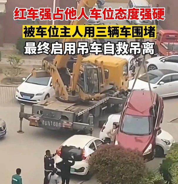 有人将停车玩出了围棋的既视感——今年 " 五一 " 假期,一辆红色私家车占用他人车位,并拒绝挪车。车位主人怒用三辆车围堵。结果,红车车主只好自行找吊车解围。