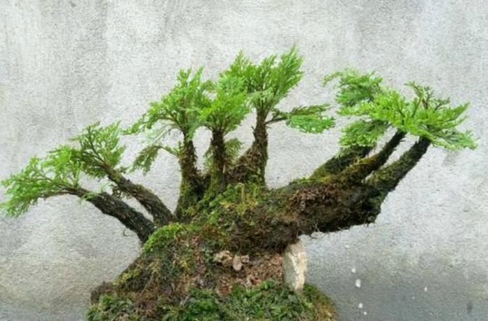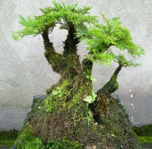 卷柏盆景具有极其顽强的抗旱本领,基本上可以说是养不死,在天气干旱的时候,小枝就卷起来,缩成一团,以保住体内的水分,一旦得到雨水,气温一升高,卷缩的小枝会平展开来。