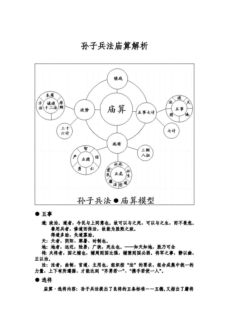 《孙子兵法》曰: 夫未战而庙算胜者,得算多也;未战而庙算不胜者,得算少也。多算胜,少算不胜,而况于无算乎?吾以此观之,胜负见矣。孙武认为,战争之前如果没有经过庙算,那么想在战争中取得胜利,那是微乎其微的。因此,孙武才说“吾以此观之,胜负见矣”。