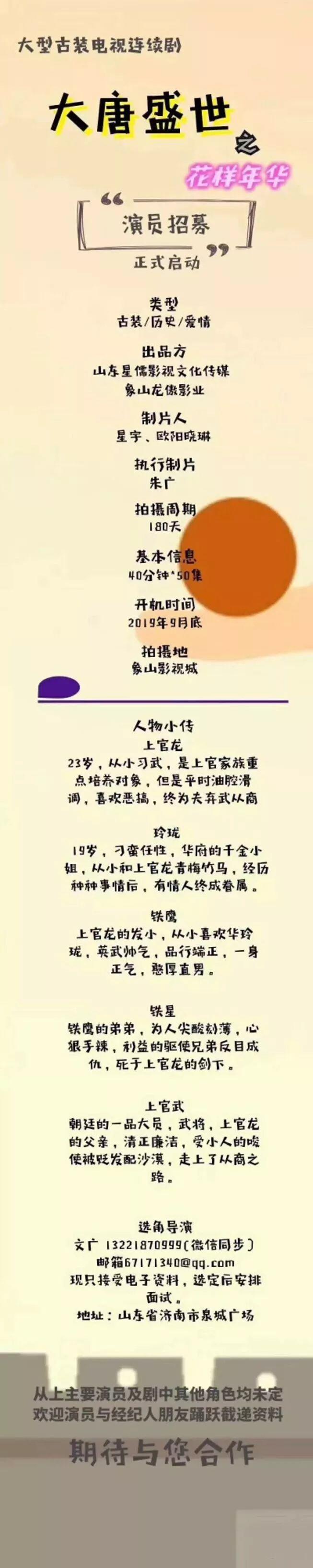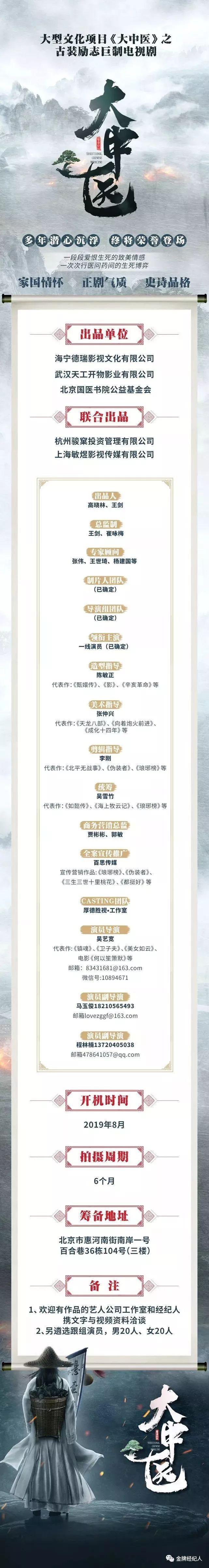 剧中大量角色均未定,欢迎诸位演员及经纪朋友投递参与!