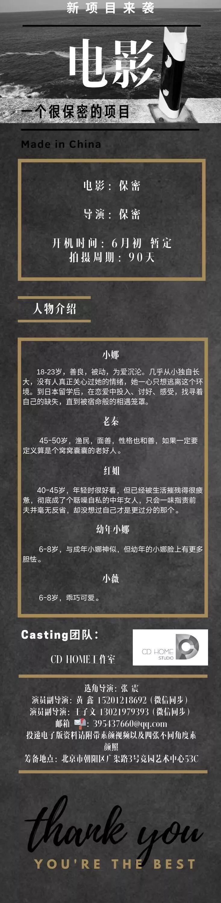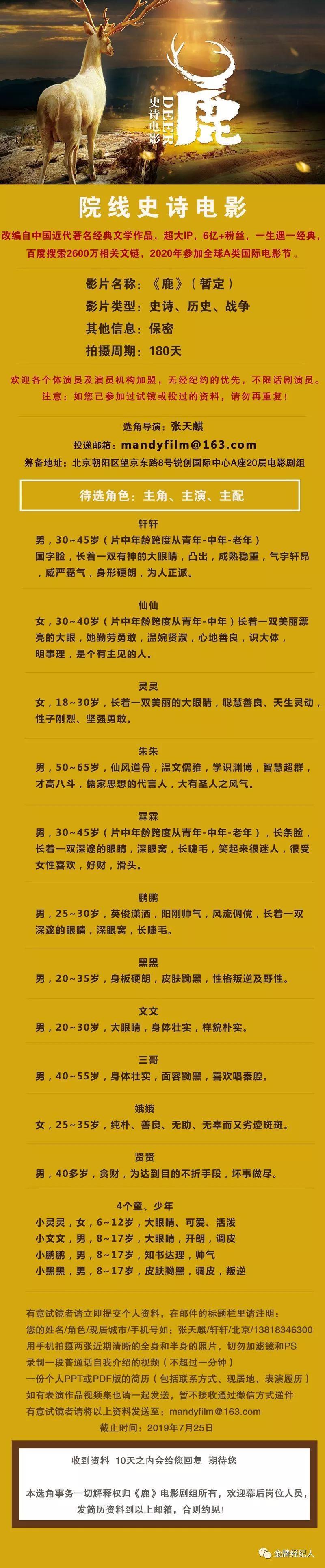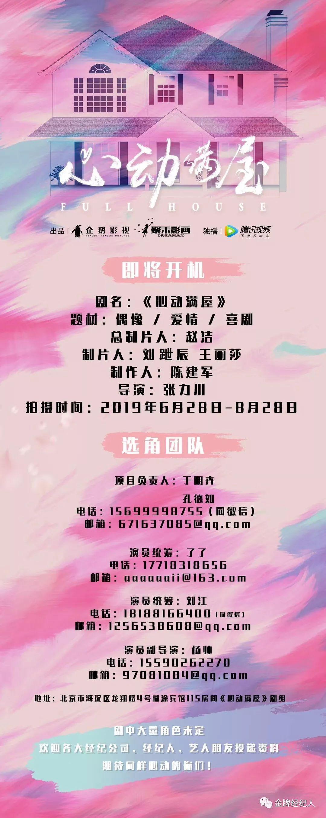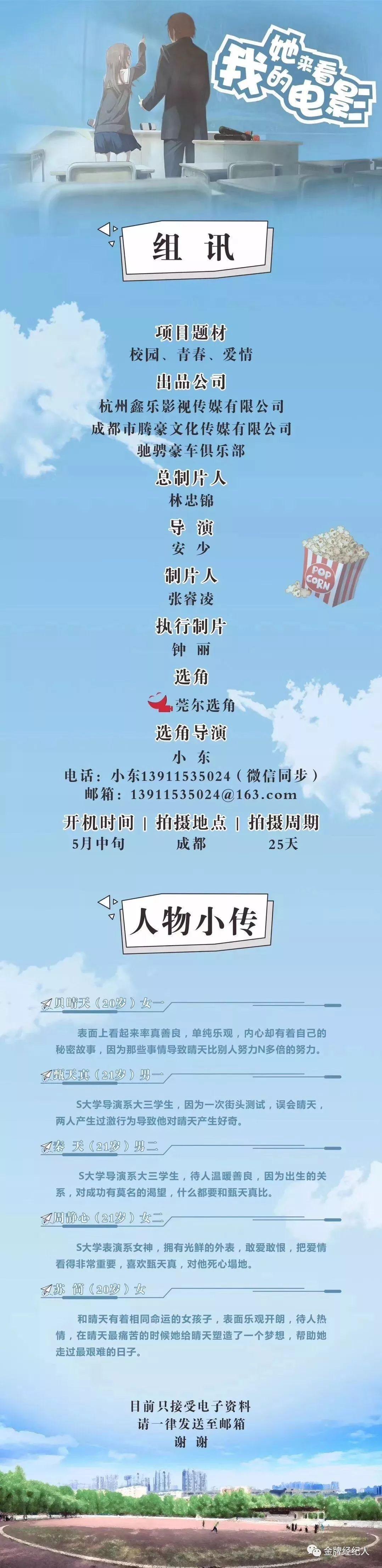 本栏目组讯由小编采集并供业内参考交流使用,信息内容如有变化请根据实际情况核实。各大剧组如有组讯发布,可以联系金牌经纪人,我们帮您扩散!