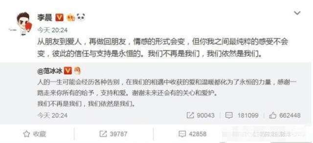 曾经说过的“永远永远”已经风轻云淡。李晨的一段话让粉丝们的心都难受了起来,我们不再是我们,对于俩人的分手粉丝深感惋惜。