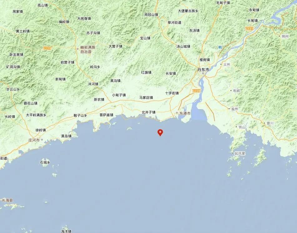 发生地点:辽宁丹东南海中,具体震中位置位于北纬39.70度,东经124.30度。