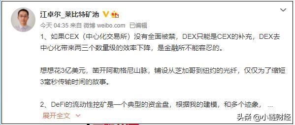 今天(9月3日)早间,莱特币矿池创始人江卓尔在微博上,针对近期持续爆红的DeFi发表了观点和看法,一针见血的指出了DeFi的虚假繁荣和即将崩盘的危机。