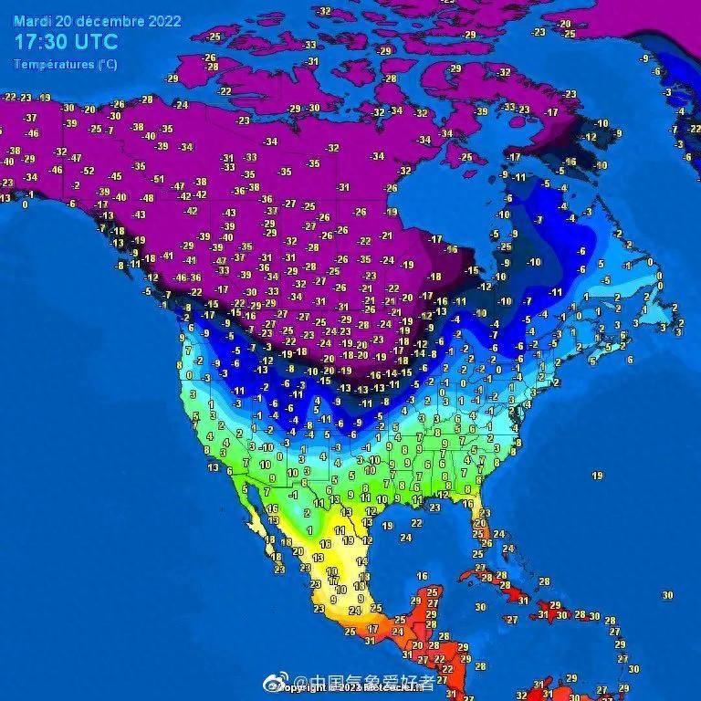 这次寒潮过程中的0度线还到达了美国墨西哥湾沿岸地区,这是什么概念?举个不太恰当的例子,相当于台北跌破5度,广州跌破2度,上海城区跌破零下3度。
