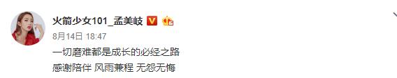 在面临退团时,孟美岐和吴宣仪内心都非常复杂,两人都发了微博诉心肠。孟美岐在微博说道,“一切磨难都是成长的必经之路 ,感谢陪伴 风雨兼程 无怨无悔”,而吴宣仪同一天在微博写道,“心照不宣 一眼万年,初心 感恩 做自己”。可见两人的心情殊途同归,一边是自己的经纪公司,一边是让自己在国内打开知名度的节目组,她俩夹在中间确实很受伤,也只能无怨无悔心照不宣地走下去。