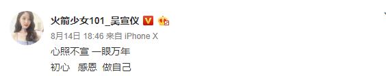 孟美岐吴宣仪紫宁回归火箭少女101,吴宣仪发微博三句话露心声!