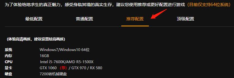 推荐配置要求;(内存要求16GB,CPU Intel i5-7600K/AMD R5-1500X或者同性能CPU