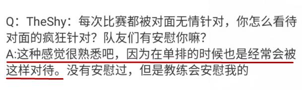 不得不感叹,Theshy是真的惨,每把比赛基本都要被针对,以至于经常送出很多人头,不过对于自己这种被针对的情况,Theshy其实在转会期就曾谈过这些话题了,当时theshy回国后曾在朋友的直播间聊过。