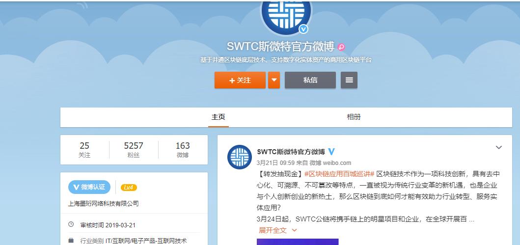 但在SWTC官网和twitter上,公开定时更新"井通币"上交易所的具体情况。据统计,目前SWTC币已经上线了包括Weidex、WINMAX、Coinbig、CoinBene、Bit-Z在内的七家交易所。