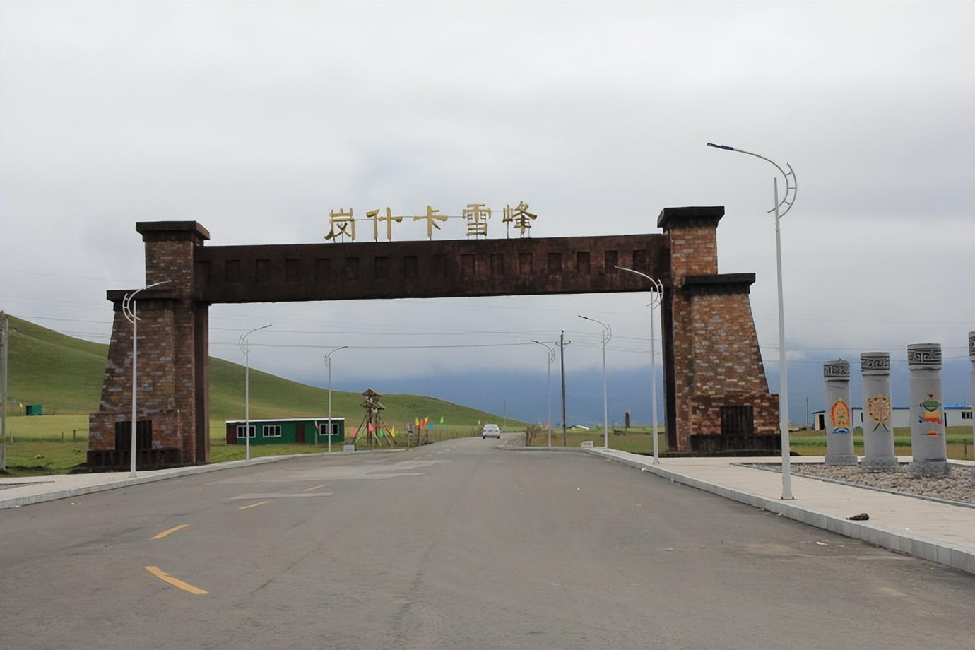 大巴车离开县城,上304国道,飞驰前行。路上,经岗什卡雪峰路口,路口美化地像个景点,草坡青青,圆柱排立,高高的石牌坊虎口大张,引诱着前往的车辆。下车活动会儿,拍了照后,上车继续前行。导游说前方就是门源县,门源县最漂亮的是油菜花,可我们来的不是时候。