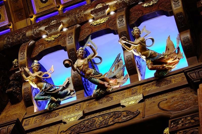 作为世界上最高大的露天青铜释迦牟尼立像,灵山大佛比四川乐山大佛还要高17米,由1560块青铜壁板拼装焊接而成的,总用铜量达到了700多吨,全部铜板展开面积可达到9000多平方米,焊接它们的焊缝总长度达到了35公里。在大佛的建造过程中,运用了现代高新科技,如先进的抗风、防震、避雷等措施,其中,避雷针就被巧妙的藏在大佛的发髻里。由于使用了特型铜壁板和先进的焊接技术,大佛的外型达到“天衣无缝”的程度。大佛右手指天,称为“施无畏印”,那是大佛在为众生除去痛苦;左手指地,称为“与愿印”,那是在保佑众生平安快乐。庄严安详的大佛,时时刻刻都在祝福游客呢。可以说,灵山大佛是集文化、艺术和宗教于一体的大型艺术珍品。如此浩大的工程,也只有在国泰民安、国富民强的盛世,才能实现这一盛举。