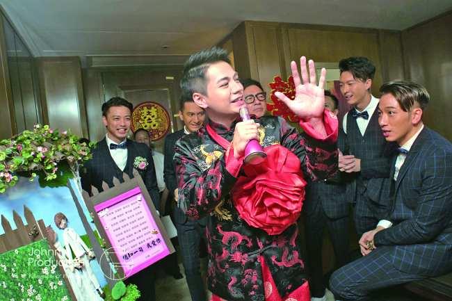 杨怡与罗仲谦继之前到英国古堡拍摄婚纱照之后,昨天在香港举行婚礼和放喜酒。昨天早上八时二非常左右,身穿中式礼服的谦儿子和朋友团成员抵达酒店接新娘,朋友团成员包含吴卓羲、王浩信、单立文、马国明、何君诚等。经过大约两小时的接新娘仪式,谦儿子接得佳人归。一对新人步出酒店时,大方让传媒插拍,谦孩子表现兴奋,和杨怡像接吻鱼般亲吻,其间一次更长达10秒,闪爆全场。从步出酒店到上车的短短的时间里,二人亲吻足六次。