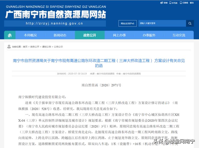 近日,南宁市自然资源局公布了《关于南宁市现有高速公路东环改造二期工程(三岸大桥改造工程)方案设计有关意见的函》(以下简称《意见》)。