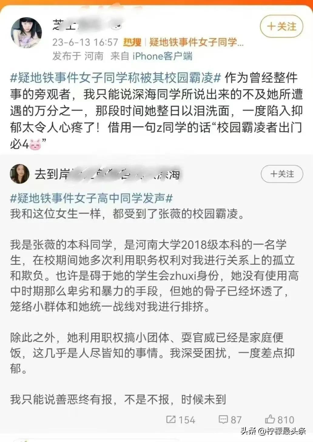 川大女地铁事件,愈演愈烈,不少以前上学阶段的同学不断揭露黑料,