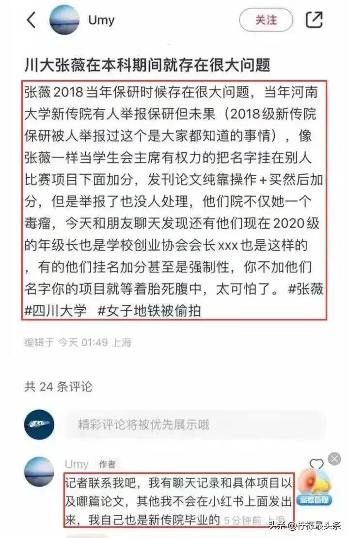 心肠歹辣,还有多人曝她中学时霸凌别人,大学期间在学生会以权谋私,研究生期间旷课严重,