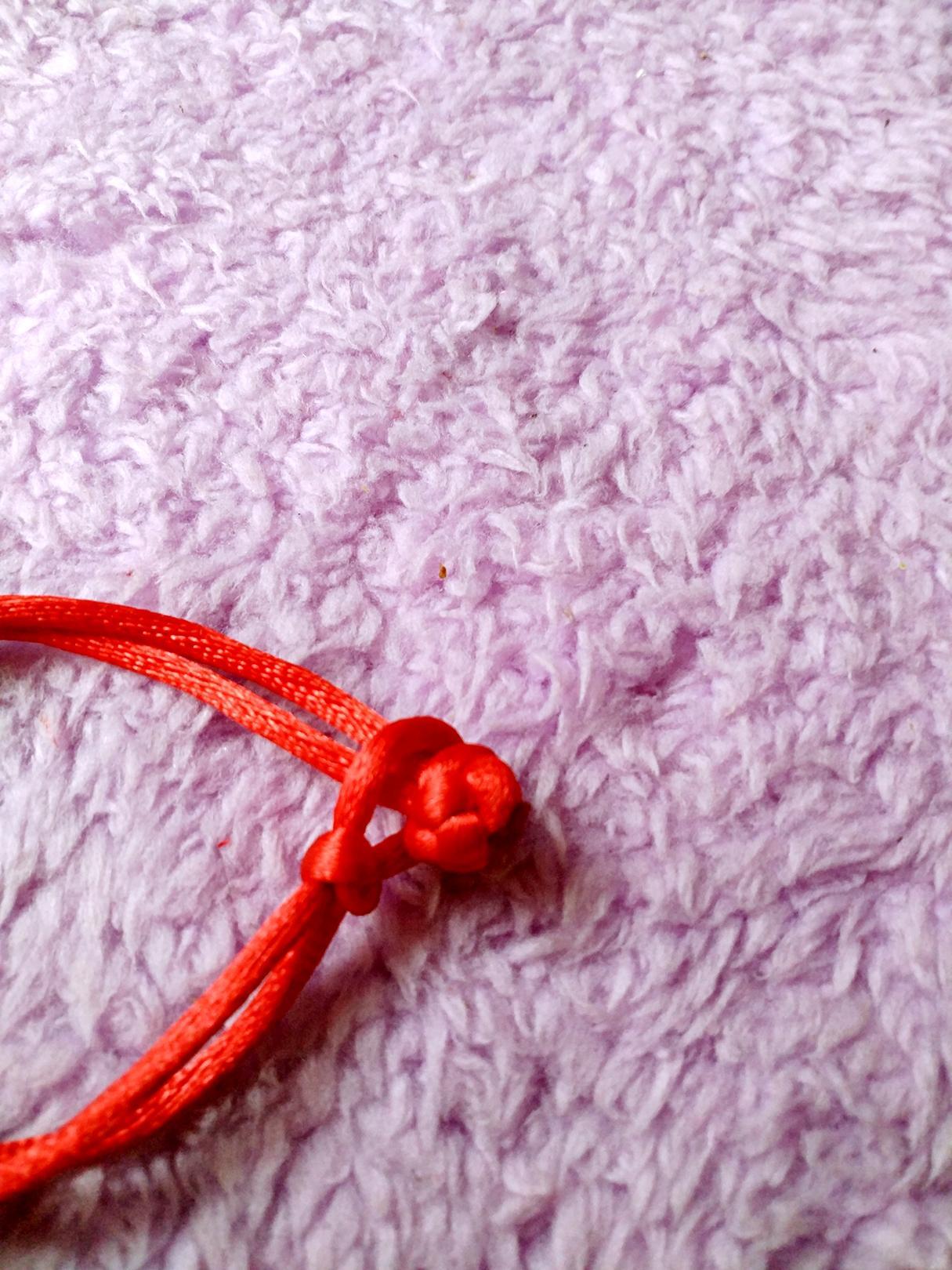 纽扣结,在编织中应用很广泛,编织出来像纽扣一样,所以叫纽扣结,平时我们看到旗袍上的纽扣就是纽扣结,在编手链时可做结尾扣用,也可在手链上做装饰用。