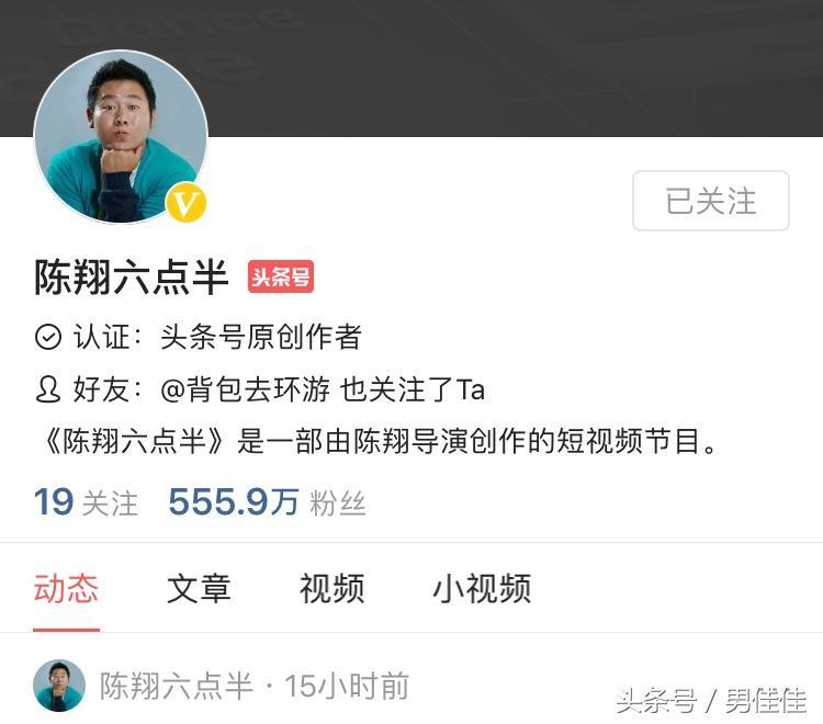 【陈翔六点半】原本头条号粉丝加上抖音的230万粉丝和西瓜视频的232万粉丝,变成了如今头条号里的550万粉丝。粉丝数量排名头条号第6位。