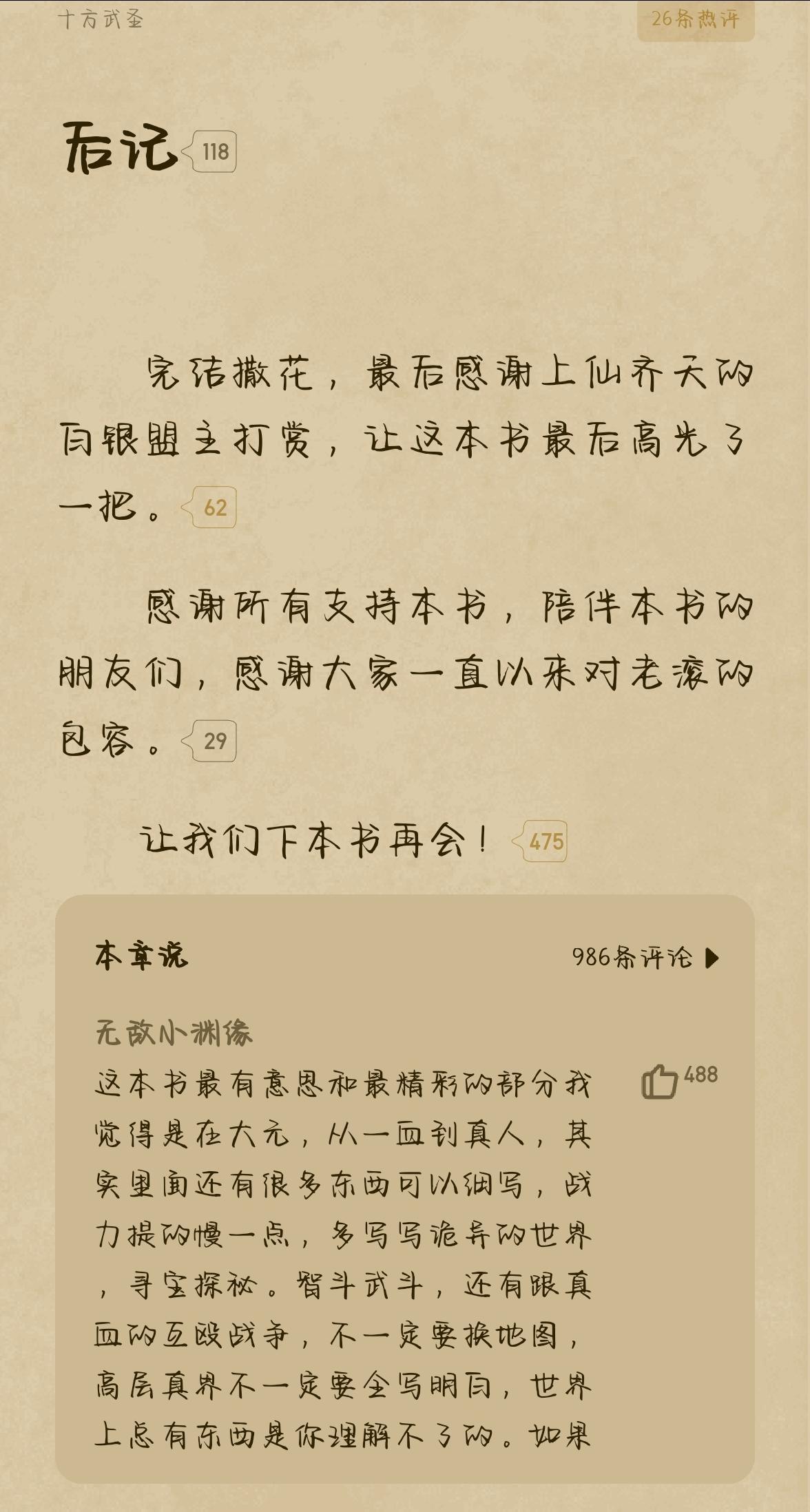 玄幻大神滚开新书完结时迎来高光时刻,创作十年只差一个白金称号