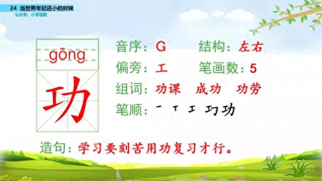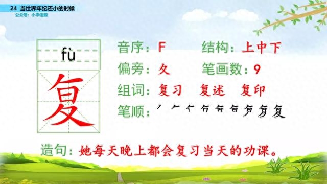 世(世界) 界(世界) 复(复习) 弄(捉弄)