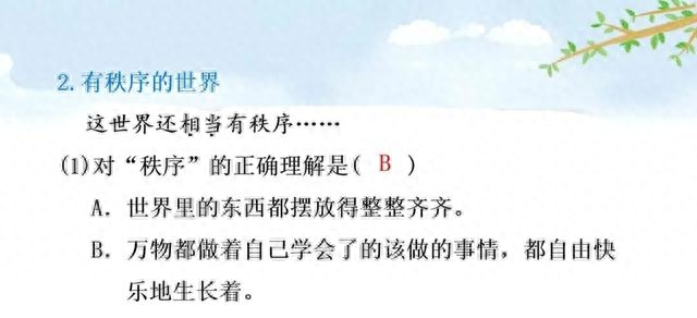 (1)这世界还相当有秩序。每天,太阳都会东升西落,上山下山,发光发热。月亮每天按照自己的想法,变化莫测,有时出现,有时不出现,有时圆,有时缺;水每天都按照自己的方式,往低处流,往低处流,往低处流…… 动物们每天按照自己的生活习惯,快乐地生活着。