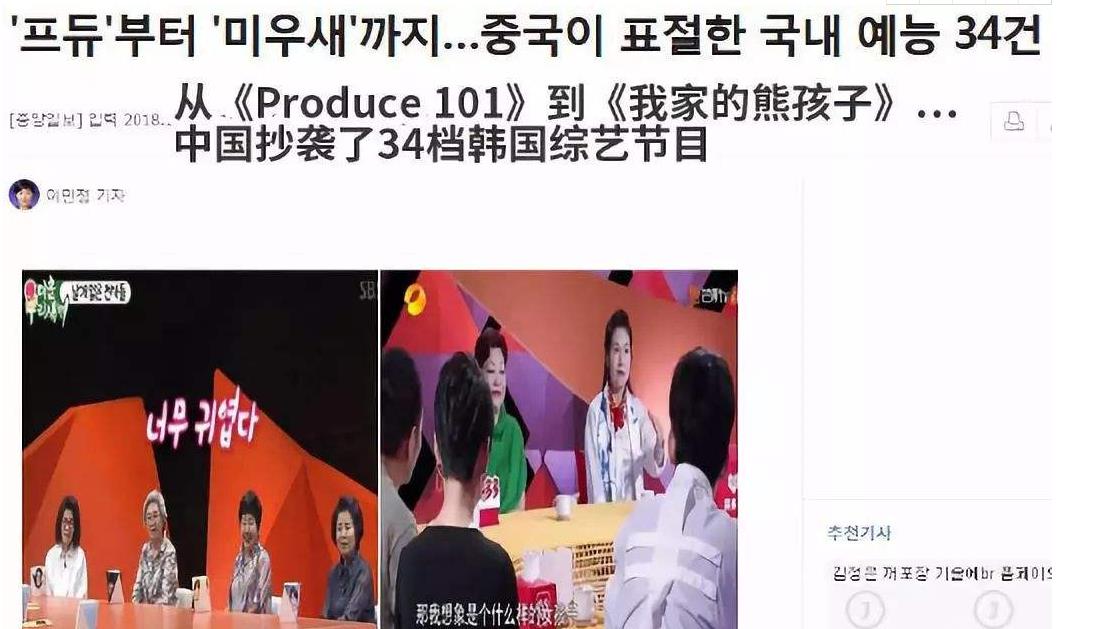 韩国《中央日报》报道称,中国国内的电视节目抄袭现象日益严重,中国抄袭韩国的综艺节目已经多达34个。