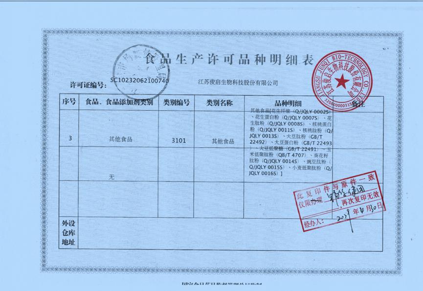 以上是传销组织最典型的案例,让我们再回归到北方基因一探究竟,通过查询得知,北方基因小分子肽这个产品首先它存在,所有方是北京北方基因生物科技有限公司,授权生产企业是江苏俊启生物科技股份有限公司,通过了解得知江苏俊启生物科技股份有限公司具有生产小分子肽类资质。