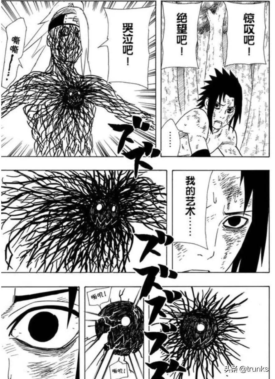 火影全剧中迪达拉多次说出“艺术就是爆炸”这一台词,但最震撼的要数与宇智波佐助的交手中。迪达拉因为宇智波佐助对“艺术就是爆炸”表现得十分不屑,不惜自爆向佐助证明自己追求的是爆炸艺术。