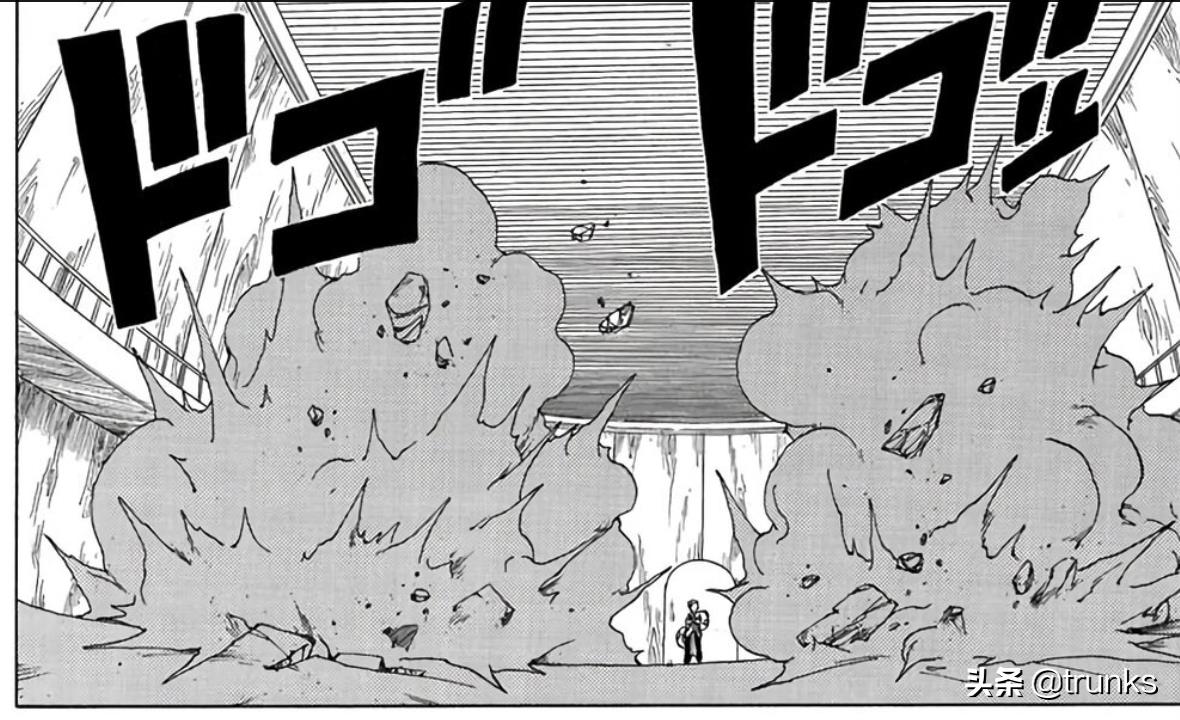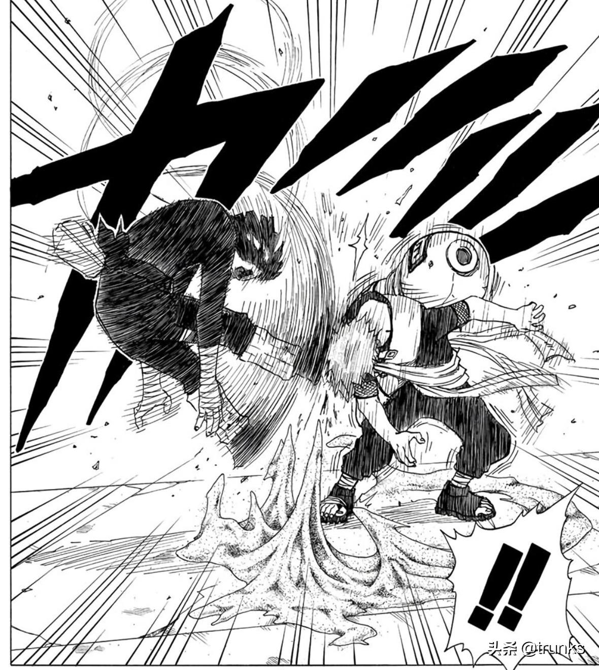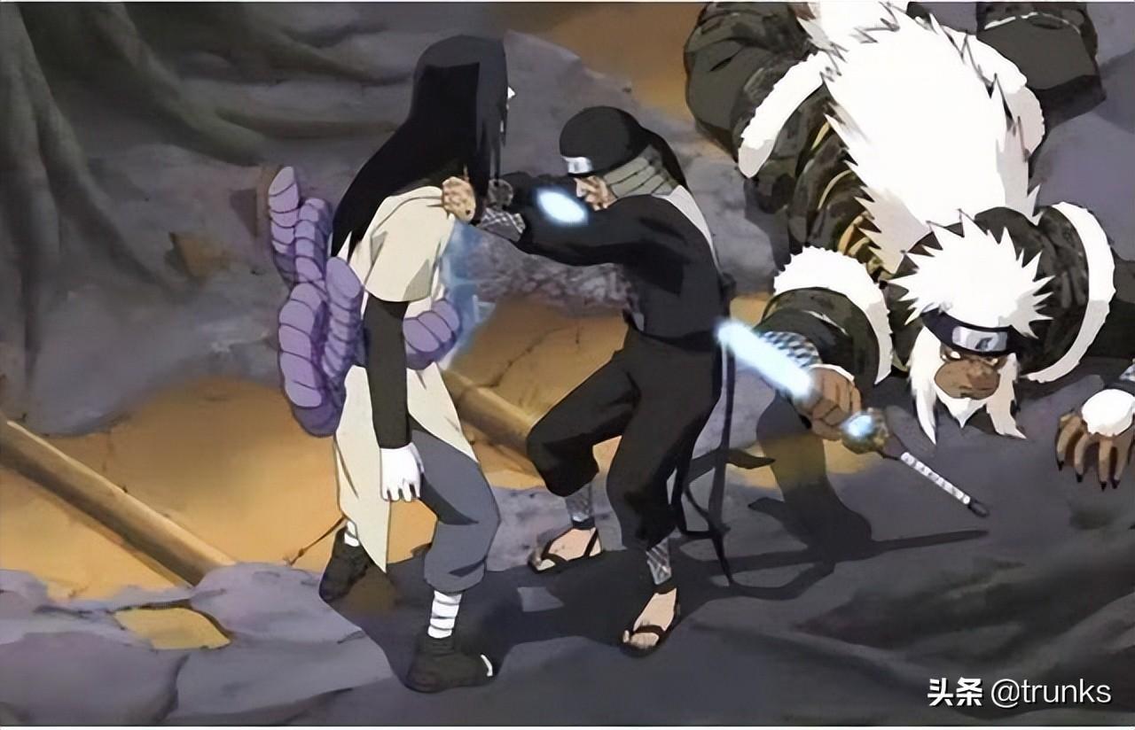 另一处比较经典的出处,来自自来也、大蛇丸、纲手三人的巅峰对决。纲手因为恐血症导致不敢继续作战,而自来也又被纲手下了药发挥不出真正的水平。鸣人为了守护村子、守护火的意志奋勇向前,被兜打得七荤八素的。