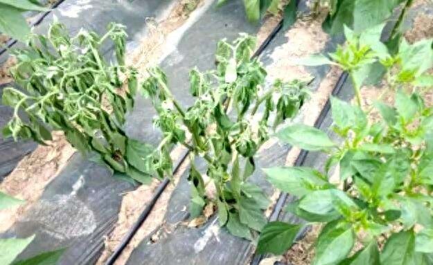 辣椒疫病的发病特点。辣椒的叶片,果实,茎是主要病害部位,尤其是茎部最容易发病。在辣椒苗期和成株期都会发病。幼苗期从茎部开始侵染造成水渍状腐软和倒伏。成株期染病时,叶子周围会出现暗绿色圆形病斑和白色霉状物,并开始腐烂脱落。茎部发病时呈暗褐色条状病斑,枝叶枯萎呈褐色软腐和白色霉斑。果实发病初期则为水渍状暗绿色,后期为灰白色软腐,病果会干缩而不脱落,潮湿天气时会出现白色霉层。