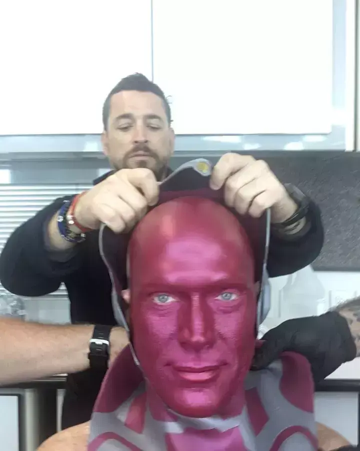 不管如何,如今幻视已经确认继续出现在《复联4》中,而这次贝坦尼分享的幻视化妆视频也让我们见识到了幻视是如何“诞生”的,还别说,不但毫无违和感,而且颜值依旧!真是敬佩化妆师和演员们为电影的奉献!