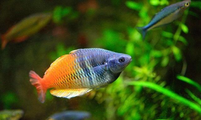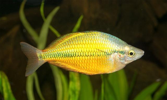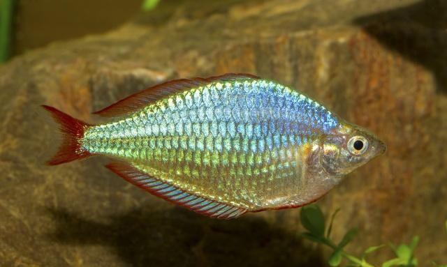彩虹鱼性情温和,能与温和的中小性型热带鱼混养,平时活泼好动。