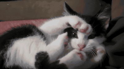 但是奶牛猫不一样,在奶牛猫感觉到无聊的时候,它可能会...蹦个迪?