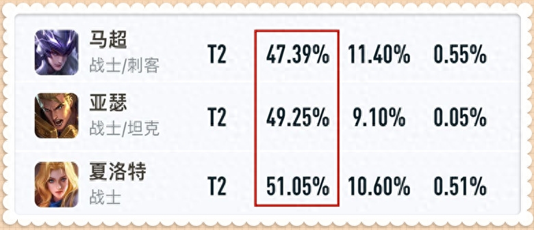亚瑟的胜率虽然比马超高,但马超的强度肯定是超过他的,这一点毋庸置疑。其实,熟悉这三个英雄的玩家应该都懂,亚瑟的弱,马超和夏洛特的强(相对的)都和冰痕之握的强度没有什么太直接的关系。但如果冰痕之握加强的话,他们三个肯定会是受益者,所以我觉得冰痕之握是可以被加强的。