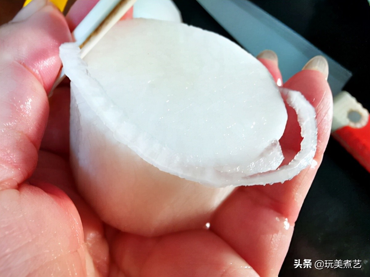 白萝卜怎么削,也是有学问的。先刨去外皮,切成3公分的厚块,再用刨刀将边缘的棱角削去。